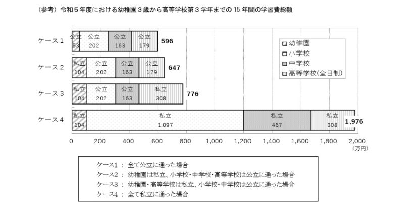 ※ これらの金額には、授業料、教材費、制服、塾代、習い事などの学校外活動費が含まれます。